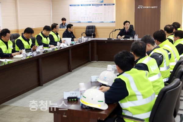 김상균 이사장은 올해 사업비 4,152억 원의 집행현황과 공정률이 54.1%로 순조롭게 공사가 진행 중인 것을 보고받고, 차질 없는 사업비 집행으로 지역경제 활성화에 기여할 것을 주문했다.