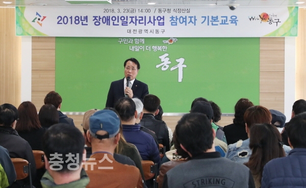대전 동구(구청장 한현택)는 지난 23일 구청 대회의실에서 장애인 일자리사업 참여자 총 71명을 대상으로 기본교육을 실시했다.