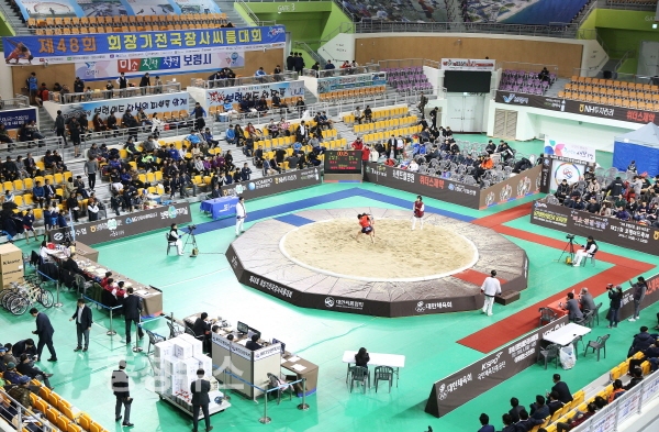 충남 보령시는 지난 24일부터 오는 30일까지 보령종합체육관에서 제48회 회장기 전국장사씨름대회를 개최하고 있다.