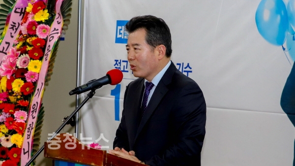 양승조 의원은 축사에서 “그 뜻을 헤아리고 해결할 사람인 본인이 적임자이며 협혁과 지원을 아끼지 않겠다"며, "복기왕 후보와 박완주 최고위원도 보령발전에 최대한 협력을 하겠다"고 말했다.