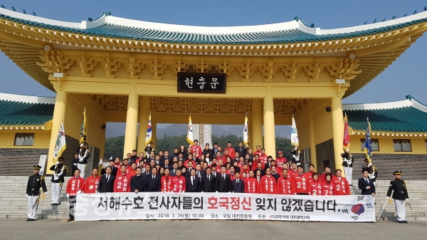 자유한국당 대전시당(위원장 이은권)은 26일 천안함 폭침 8주기를 맞아, 국립대전현충원을 찾아서 서해수호 전사자 묘역을 도보순례하고 참배하는 등 굳건한 자유대한민국 수호의지를 다지는 자리를 가졌다.
