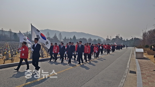 이날 행사는 북한의 천안함 폭침 8주기를 맞아 시당 당직자와 6.13 지방선거 출마 예정자 등 150명이 호국영령들의 위령이 안치된 현충탑 참배를 시작으로, 천안함 전사자 묘역과 故 한주호 준위 묘역, 제2연평해전 전사자 묘역 등 약 4Km 구간을 도보로 순례하며, 영면하신 전사자들의 고귀한 희생정신을 기리고 그 뜻을 함께 나누는 과정으로 진행됐다.