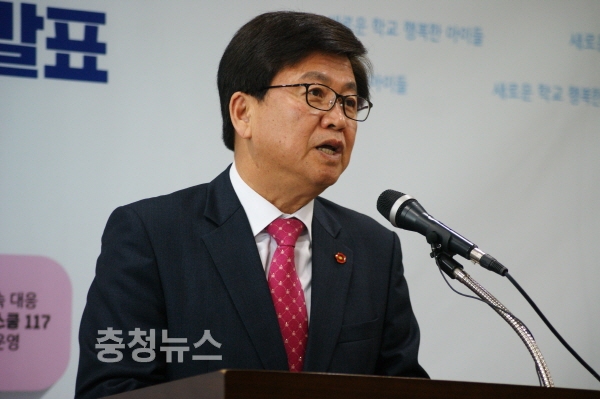최교진 세종시교육감은 27일 행복한 학교문화를 조성하기 위한 대한 대책으로 '2018 학생생활교육 기본 계획'을 발표하고 "학교폭력없는 환경에서 학생들이 건강하고 바람직하게 성장 하도록 하겠다"고 밝혔다.