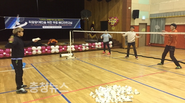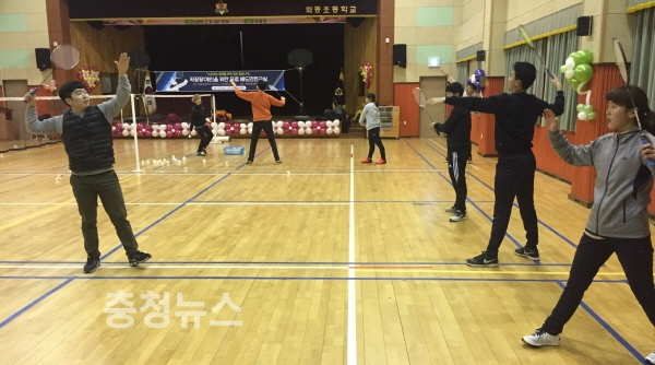 지난달 13일 화동초등학교에서 열린 장애인 배드민턴 교실 모습.