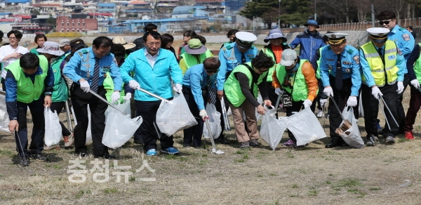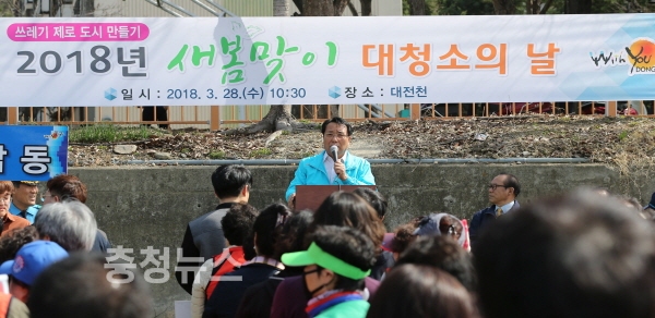 대전 동구(구청장 한현택)는 28일 천동주공아파트 인근 대전천 둔치에서 2018년 새봄맞이 대청소의 날 행사를 개최했다.