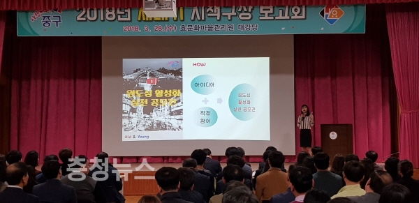 대전 중구(구청장 박용갑)는 28일 대전 효문화마을관리원에서 신규 공무원들의 참신한 생각을 행정에 접목할 수 있는 ‘2018 새내기 시책구상 보고회’를 개최했다.