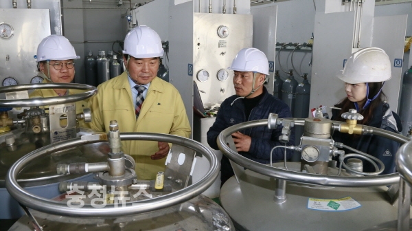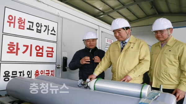 이날 박수범 대덕구청장은 고압가스 제조‧판매 현장을 직접 방문해 ▶가스누출경보장치 정상작동 및 법정검사 실시 여부 ▶저장탱크시설 지반침하 및 붕괴 위험지역 발생 여부 등에 대해 한국가스안전공사 대전세종지역본부(본부장 문성욱)와 합동 점검했다.