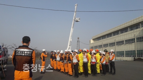 조치원소방서(서장 안종석)가 30일 세종시민체육관에서 긴급구조 훈련을 실시했다.