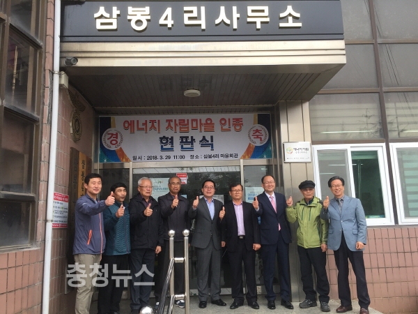 지난 3월 28일 에너지 자립마을 현판식을 가진 삼봉4리 마을이 신재생에너지 관련된 사업을 추진할 경우 국비우선 지원과 정책융자금 우선지원 등의 혜택을 받을 수 있다.