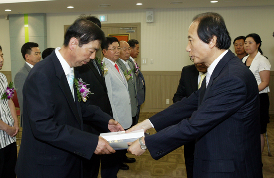 김신호 교육감은 30일(월) 오후 3시 회의실에서 2008년도 6월말 퇴직공무원에 대한 훈장 및 표창장 전수식을 가졌다.