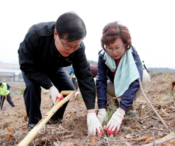 이번 행사는 푸르고 아름다운 태안을 가꿔 지역 이미지를 개선하고 자연을 사랑하는 마음을 고취시키기 위한 것으로, 참여자들은 이날 약 1ha의 임야에 편백나무 2년생 3,000본을 식재했다.