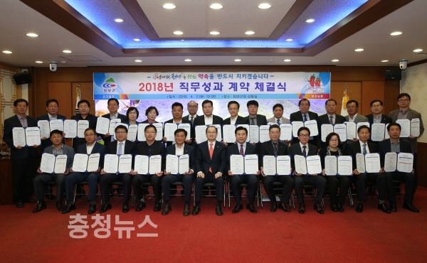 충남 청양군 간부 공무원들이 직무성과 계약을 맺고 군민과의 약속 실행에 전력할 것을 다짐했다.