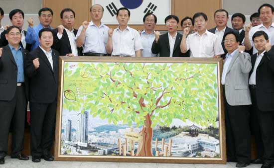 교육, 꽃, 축제, 청렴이 조화롭게 디자인된 명품도시를 건설하자는 뜻의 Vision-Tree를 위해 직원들뿐 아니라 각종 자생단체와 자원봉사단체 회원 등 다양한 주민들이 한마음으로 소망 잎새 달기에 참여했다.