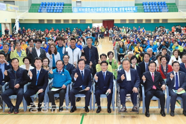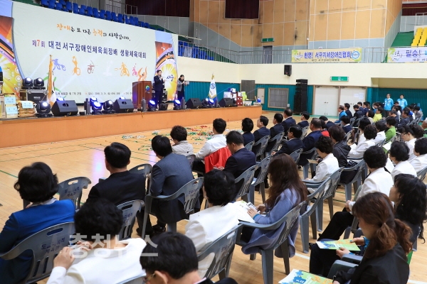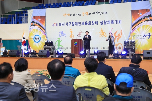 대전 서구 장애인체육회(회장 장종태)는 지난달 31일 도솔다목적체육관에서 장애인 건강증진과 체육 활성화를 위한 ‘제7회 서구 장애인 체육회장배 장애인 생활체육대회’를 성황리에 개최했다.