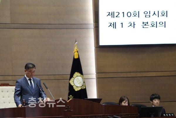 전종한 천안시의회 의장은 2일 제210회 임시회 본회의에서 "지난 3월, 문재인 대통령은 국민과의 약속을 지키기 위해 직접 개헌안을 발의하면서 전국민적인 개헌 논의가 활발하게 진행중"이라고 밝혔다.