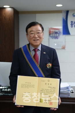 김석환 홍성군수가 지난달 30일 한국청소년연맹으로부터 ‘청소년대훈장’을 받는 영예를 안았다고 3일 밝혔다.