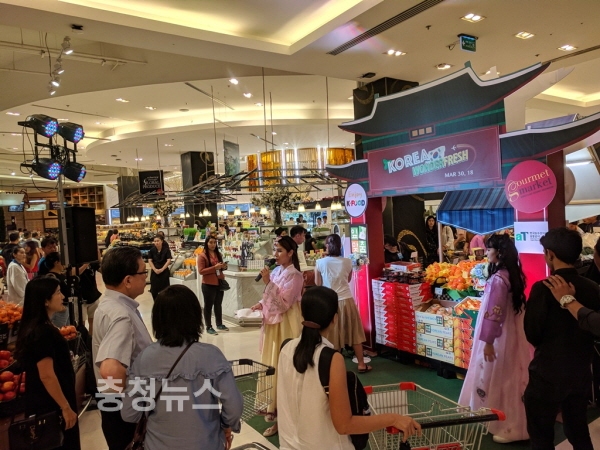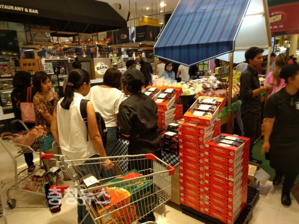농림축산식품부와 한국농수산식품유통공사(aT, 사장 이병호)는 지난달 30일 태국 내 최고급 유통체인인 The Mall Group의 Gourmet Market에서 한국산 딸기 등 신선농산물 23종을 상설 판매하는 ‘K-Fresh Zone, Thailand’를 오픈했다고 3일 밝혔다.