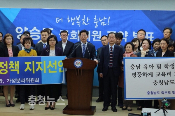 양승조 의원은 “지난해 출산율이 1.05명으로 떨어지면서 사상 최악의 인구절벽 시대가 도래하고 있다. 충남의 경우도 저출산고령화 위기로 인해 향후 30년 동안 7개 시·군이 소멸 위기 단계에 진입할 것으로 예상되고 있다. 이에 보육지원을 더욱 강화하여 적어도 아이 키우는데 어려움을 느끼지 않도록 아이키우기 좋은 충남을 만들겠다”고 공약발표의 배경을 설명했다.