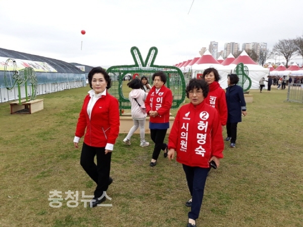 4일 오후 논산시 논산천 둔치에서 개최된 논산딸기축제 현장에는 도지사 후보는 물론, 논산시 광역, 기초의원 예비후보자들과 인근 지역 계룡시 예비후보자들의 모습도 보였다.