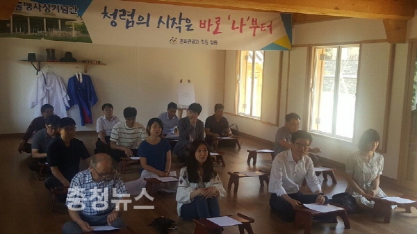 시 행정을 선도하고 있는 간부 공무원의 청렴마인드와 리더십 확립을 목표로 청백리 맹사성 선생의 인물 고찰과 청렴 다짐 서약 등을 통해 실천의지를 강화하고 청렴에 대한 친밀도를 높일 수 있는 내용으로 진행된다.