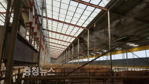 서천군농업기술센터, 농업미생물 활용 안개분무시스템 축사 냄새 저감 효과만점!(안개분무시스템 활용 모습)