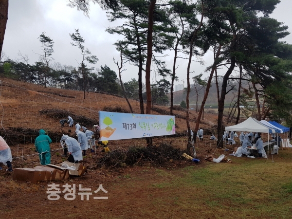 충남 아산시는 제73회 식목일을 기념해 지난 5일 염치읍 대동리117-1번지 일원 1ha 임야에서 2년생 소나무 3000여 그루를 심는 나무심기행사를 가졌다.
