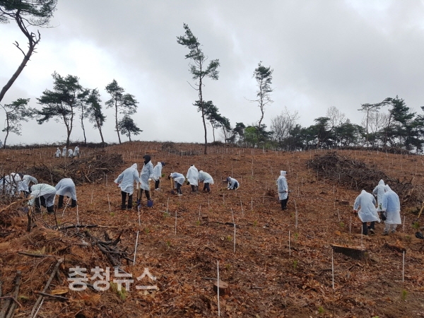 5일 염치읍 대동리 1ha 임야에 2년생 소나무 3000여 그루 식재