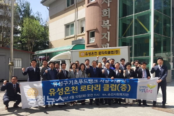 대전 유성구는 10일 유성온천로타리클럽(회장 한유진)이 송강복지관에 지역주민과 유성온천로타리클럽 회원 20여명이 참석한 가운데 2900만원 상당의 푸드뱅크 차량을 기증했다.