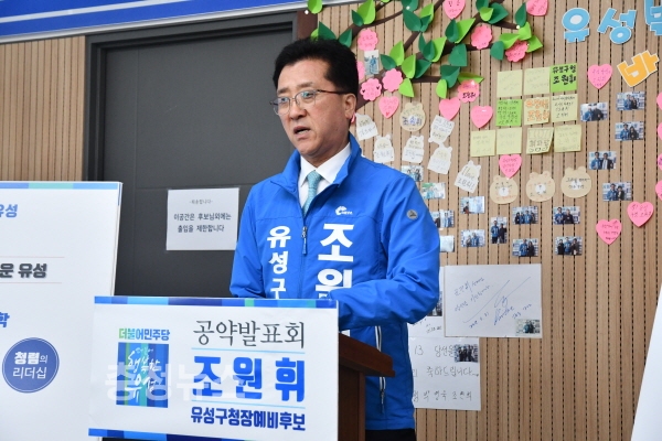 더불어민주당 조원휘 유성구청장 예비후보가 4대 구정 운영철학인 역량·통합·소통·청렴을 토대로 스마트 한 유성을 만들겠다“고 피력했다.