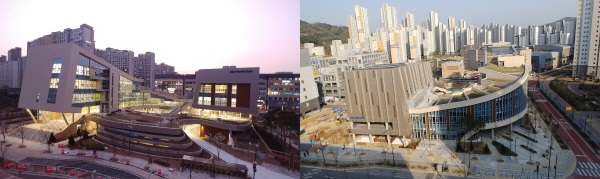 ‘소담동(3-3생활권) 복합주민공동시설’(좌) 야간모습, (우) 주간모습