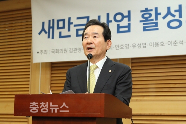 정세균 국회의장은 10일 새만금 활성화를 위한 정책포럼에서 "새만금, 전북경제 활로"라고 말했했다.