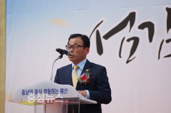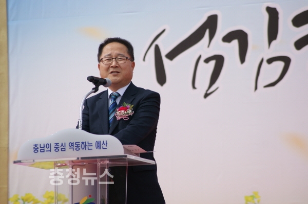 홍문표 의원은 “예산의 1100년의 도도한 역사를 지켜낸 것은 군민 모두의 자랑이라면서 ▲5년동안 AI, 구제역등 질병없는 청정지역 군 ▲청사를 신축하면서도 부채가 없는 군 ▲대표선수들이 애용하는 황토사과를 생산하는 군 ▲윤봉길, 추사 김정희 선생을 배출시킨 군으로서 자긍심을 갖고 모두합심하여 오늘의 어려움을 극복하면 우리 모두에게 희망이 있다”고 축하했다.