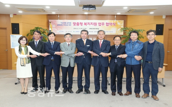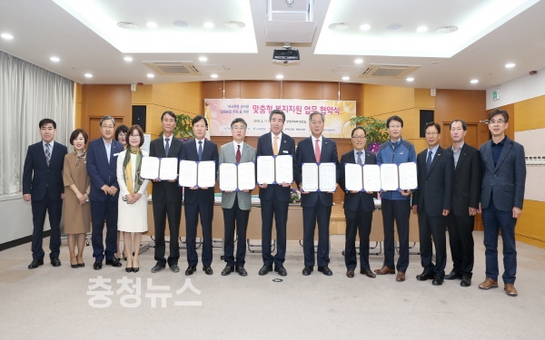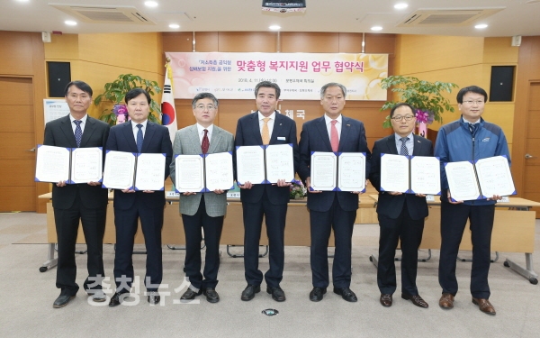 충남 보령시는 11일 오후 보령우체국에서 김동일 시장과 이용일 K-Water 보령권지사장, 최존호 보령우체국장이 참석한 가운데 저소득층 공익형 상해보험 지원을 위한 맞춤형 복지지원 업무 협약식을 가졌다.