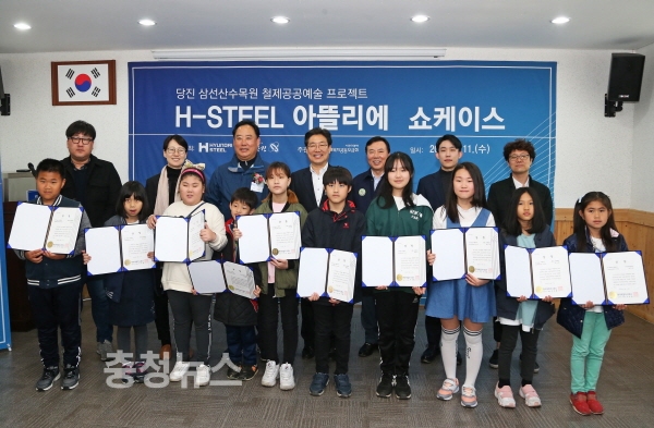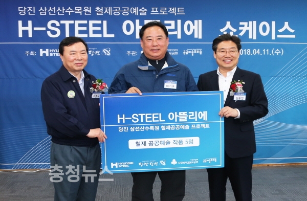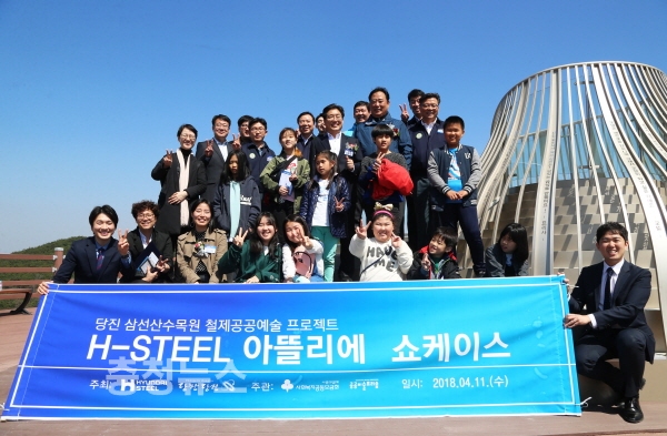 당진시에 따르면 현대제철은 11일 삼선산수목원에서 오명석 현대제철 당진제철소장(부사장)과 당진시청 관계자 등 40여 명이 참석한 가운데 철 제공공예술 프로젝트 ‘H-Steel 아뜰리에(ATELIER)’ 쇼케이스를 개최하고 ‘철제 공공예술 문화공간’에 설치된 공공예술조형물을 공개했다.