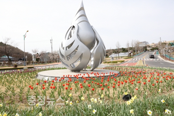 군 청사 앞 회전교차로 주변에 심어진 튤립과 수선화의 새싹이 자라 꽃을 피우고, 청양의 상징 고추·구기자를 표현한 향나무 식재지에는 어두운 밤 아름다운 조명으로 활력을 불어넣고 있다. 또 중앙분리대 황금사철과 홍매자는 수줍게 본연의 색을 자랑할 준비를 하고 있다.