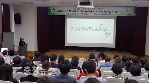 충남교육청(교육감 김지철)은 유치원 교원의 전문성 신장을 위한 2018 유치원 교원능력개발평가 평가관리자 연수를 12일 충남유아교육진흥원에서 평가관리자 150명을 대상으로 실시했다.