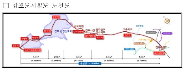 한편, 김포도시철도 건설 사업(총연장 23.67km)은 김포 한강신도시 건설에 따른 광역 교통개선 대책의 일환으로 총사업비 약 1조 5086억 원이 투입되며, 철도공단과 서울교통공사가 공동으로 사업관리를 맡고 있다.