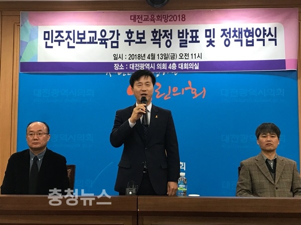 성광진 후보는 이날 대전시의회 4층 대회의실에서 열린 후보자 확정 발표 및 정책협약식에서 이와 같이 말했다.