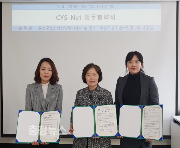 대전 유성구는 유성구청소년상담복지센터(센터장 서선미)가 지난 12일 학교-지역사회 네트워크 구축의 일환으로 대전하기중학교(교장 이강분), 구암지역아동센터(센터장 임현정)와 업무 협약식을 가졌다고 밝혔다.