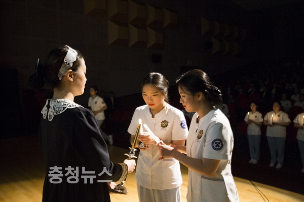 배재대 간호학과(학과장 조의영)는 13일 배재대 21세기관 콘서트홀에서 '제5회 나이팅게일 선서식'을 열었다. 이날 선서식은 간호학과 학생과 학부모, 교수 등 200여 명이 참석했다. 학생들은 나이팅게일의 정신을 이어받아 예비 간호인으로 사명을 다하겠다고 선서했다.