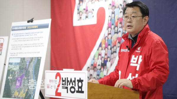 또 20일에는 동구 소제구역을 찾아 ‘역사공원 조성’에 대해 발표하고, 21일과 22일에는 중구와 대덕구를 방문해 ‘보문산 종합관광개발 조기 추진’ ‘오정농수산물도매시장 주변 현대화 종합유통단지 조성’ 등을 브리핑할 예정이다.
