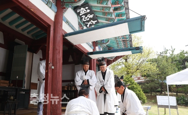 대전 동구(구청장 한현택)는 15일 용운동에 있는 문충사(文忠祠)에서 유림 및 후손 등 50여 명이 참석해 2018년 춘계 제향 봉행 행사가 열렸다고 밝혔다.