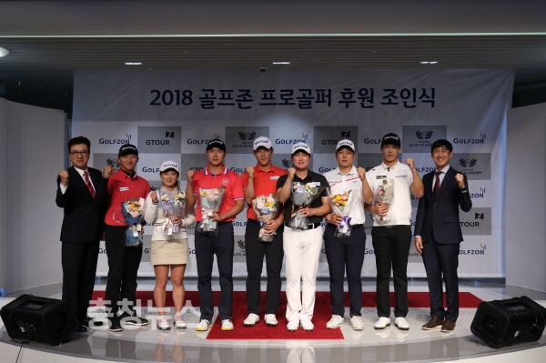 ㈜골프존(대표이사 박기원)은 지난 14일 골프존 조이마루 챔피언스홀에서 김성현, 김영웅, 송남경, 윤성호, 한창원, 함정우 등 골프존 엘리트아카데미 프로골퍼 6명과 메인 스폰서 계약을 체결했으며, GTOUR 선수로서 1부 투어에서 우승을 거둔 김홍택 프로골퍼와는 서브 스폰서십 계약을 체결했다.