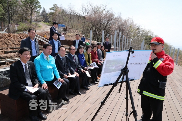 박선용 의장은 전망대 데크 및 휴게쉼터, 기초시설 설치 현장을 둘러보면서 시민들의 편익 증진과 안전 분야에 대해 관심을 표하고, 식장산 전망대가 대전시를 대표하는 랜드마크로 조성해 줄 것을 당부했다.