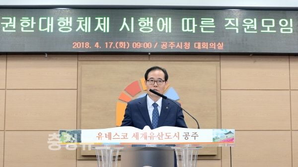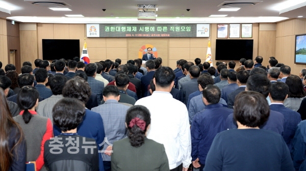 충남 공주시가 17일 오전 시청 대회의실에서 박용권 부시장을 비롯한 팀장급 이상 공무원 200여명이 참석한 가운데 직원모임을 가졌다.