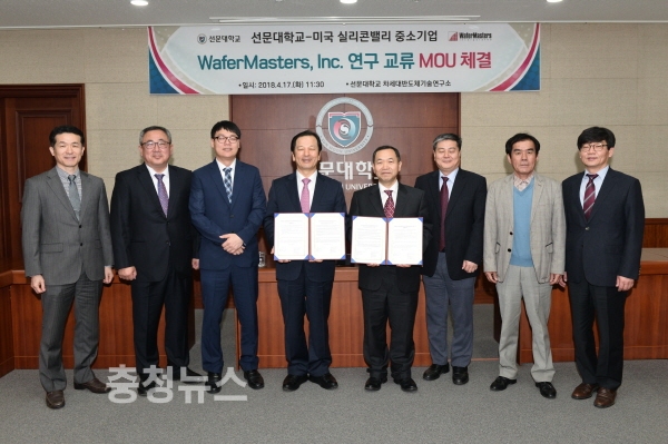 선문대학교(총장 황선조)와 미국 실리콘밸리 웨이퍼마스터즈(대표 유우식)는 17일 선문대 본관 10층 대회의실에서 공동기술 개발을 위한 협약을 맺었다.