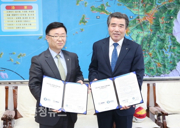 충남 보령시는 18일 시장실에서 김동일 시장과 김윤휘 (사)한국배구연맹 사무총장, 신춘삼 경기운영위원장 등 관계자가 참석한 가운데 2018 보령·KOVO컵 프로배구대회의 원활한 추진을 위한 업무 협약을 가졌다.