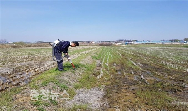 충남 예산군농업기술센터는 벼 줄무늬잎마름병의 예방 및 방제대책을 수립하고자 지난 17일까지 12개 읍·면을 대상으로 월동 애멸구 발생상황을 조사했다.