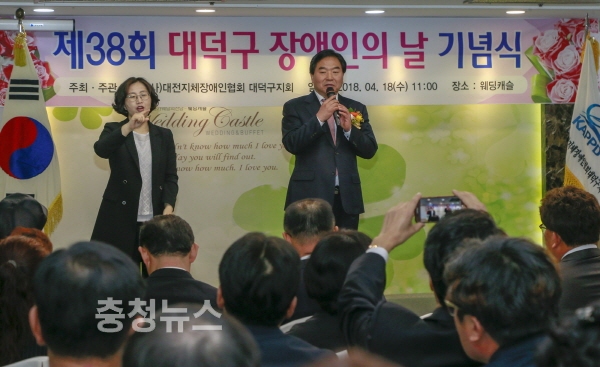 대전 대덕구(구청장 박수범)가 18일 오정동에 위치한 웨딩캐슬에서 대전광역시지체장애인협회 대덕구지회(회장 박찬진) 주관으로 제38회 장애인의 날 기념식을 성황리에 마쳤다.