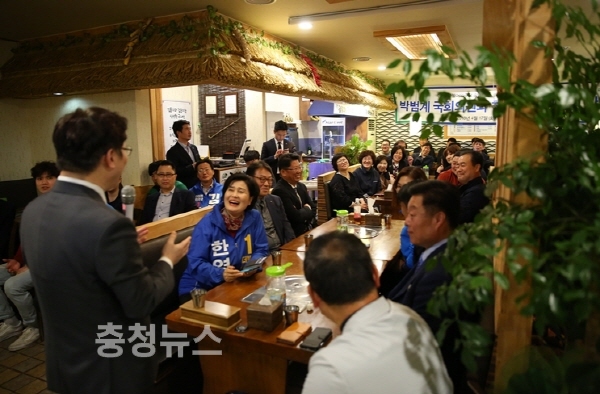 박범계 의원을 소개하는 이규희 천안갑 예비후보 / 충청뉴스 최형순 기자